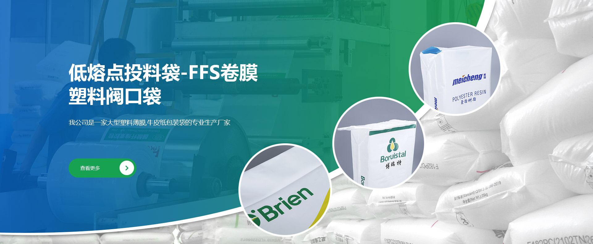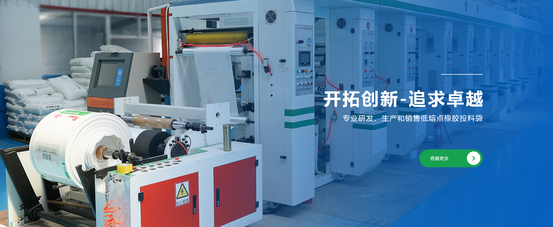 公司創(chuàng)建于1998年,是專業(yè)研發(fā)、生產和銷售低熔點橡膠投料袋、EVA閥口袋、LDPE多層閥口袋、EVA/LDPE低熔點膜、橡膠包裝膜、FFS重包裝袋、普通塑料包裝袋、牛皮紙閥口袋等產品的綜合包裝類企業(yè)